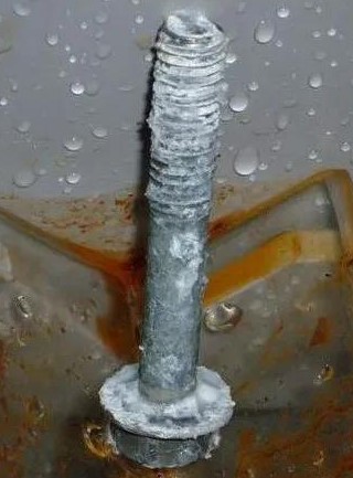白銹呈白色絮狀,結構松散,去除后在鍍層表面對應位置會(huì )留下黑色斑跡,表明鍍層已經(jīng)失去防腐作用,進(jìn)一步腐蝕則會(huì )呈現紅銹狀態(tài)。