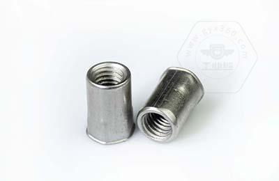 1、若產(chǎn)品的螺母需裝在外面,而里面空間狹小,且無(wú)法通過(guò)壓鉚、漲鉚或其它方式達不到其強度要求的時(shí)候,則可采用鉚;
