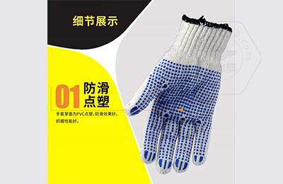 • 產(chǎn)品描述:棉滌混紡針織手套,百分之65滌百分之35棉,7針加厚涉及,掌面PVC點(diǎn)塑涉及加強,緊握耐磨損,防滑抗撕裂。適用于普通勞動(dòng)防護使用。