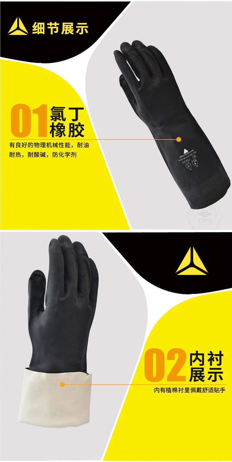 商品名稱(chēng):代爾塔 耐油耐熱防酸堿 工作勞保手套 防化防護手套 勞保用品 201510 黑色 一副(2只)