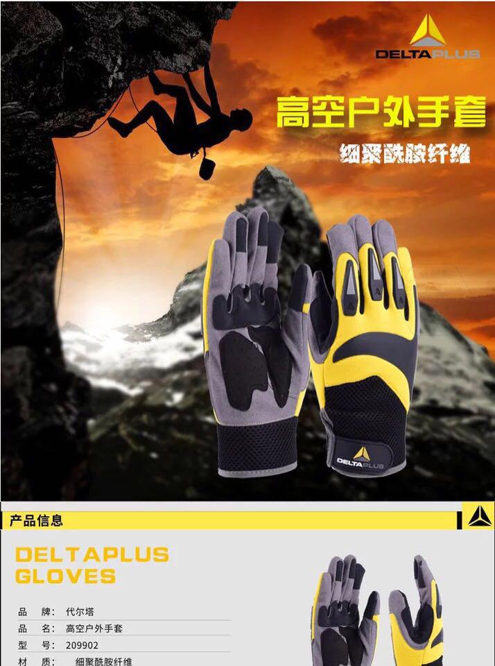 商品名稱(chēng):代爾塔 高空戶(hù)外運動(dòng)手套 適用于攀巖繩索作業(yè) 耐磨防護透氣舒.適安.全騎行 209902 黃/黑色 一副(2只)