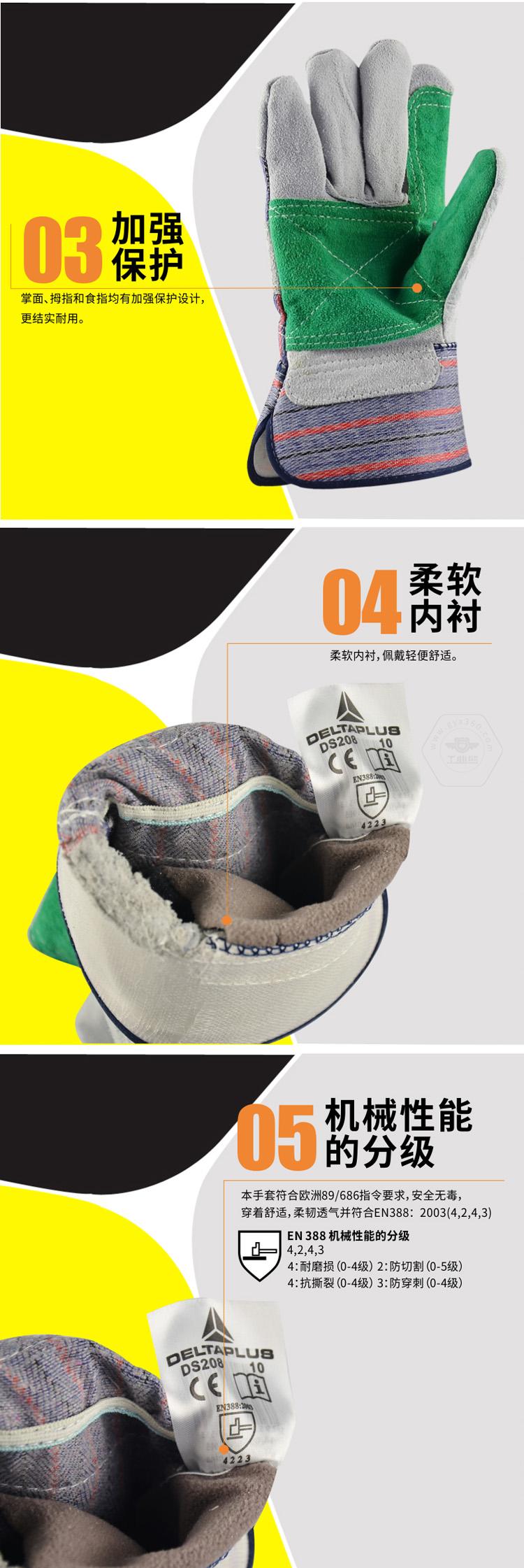 商品名稱(chēng):代爾塔 A級雙層牛皮勞保手套 強耐磨防刺穿安.全手套 機械加工修理造船204208 經(jīng)濟款-藍色/灰色10#