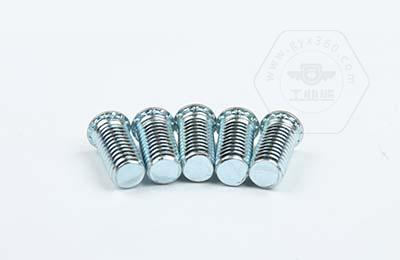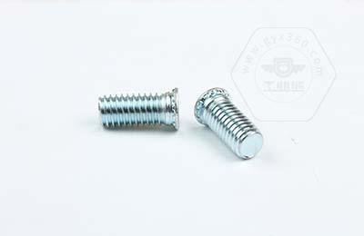 在使用過(guò)程中需在基體上開(kāi)一個(gè)小孔,將壓鉚螺釘放入孔內,采用鉚壓設備平行的均勻的在頭部平壓,因壓鉚螺釘的頭部下有齒紋壓花,當壓入后,基體在壓鉚螺釘的周?chē)a(chǎn)生變形,和齒紋發(fā)生咬合現象,從而形成一個(gè)牢固的外螺紋。